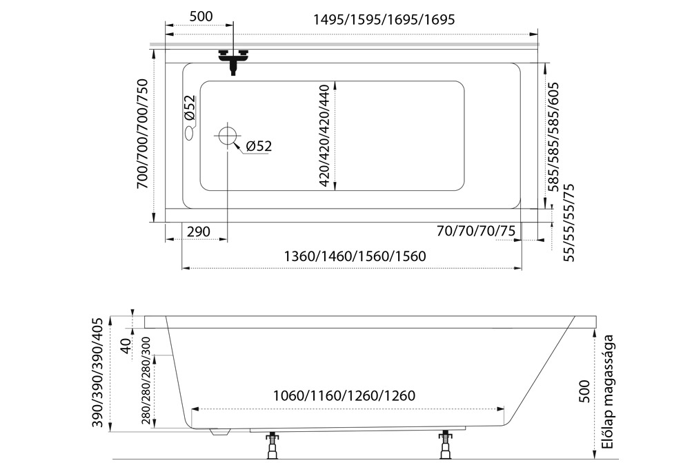 | 150x70 cm | 150 L | 102 000 Ft | helyett | 81 600 Ft |