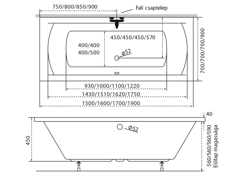 Kényelmes belső tér, középlefolyós kád kialakítás, hogy Ön és párja egyszerre élvezhessék a fürdést.