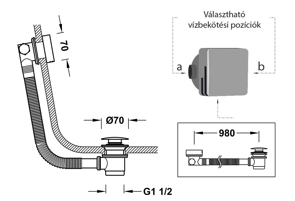 Vízfeltöltős, Click-Clack le- és túlfolyó szögletes